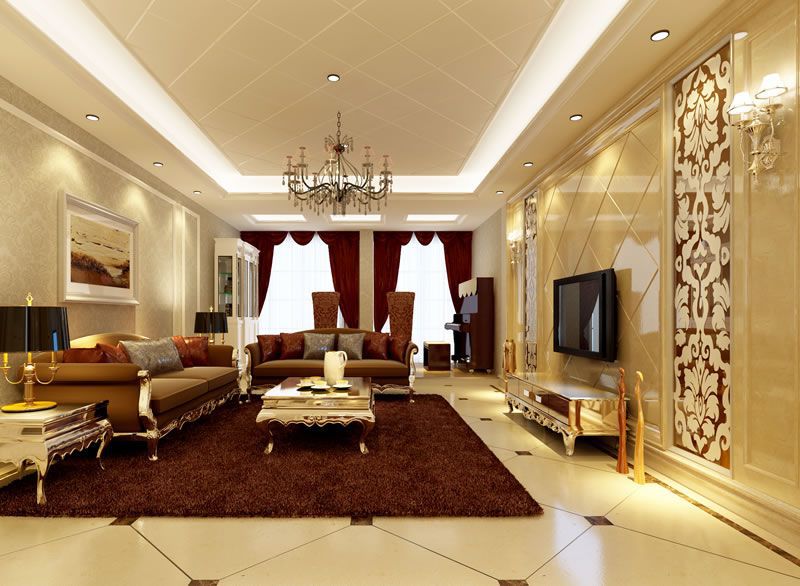 整個(gè)客廳暗紅色與金色相結(jié)合,符合歐式的穩(wěn)重奢華,家具的搭配組合也十分融洽。