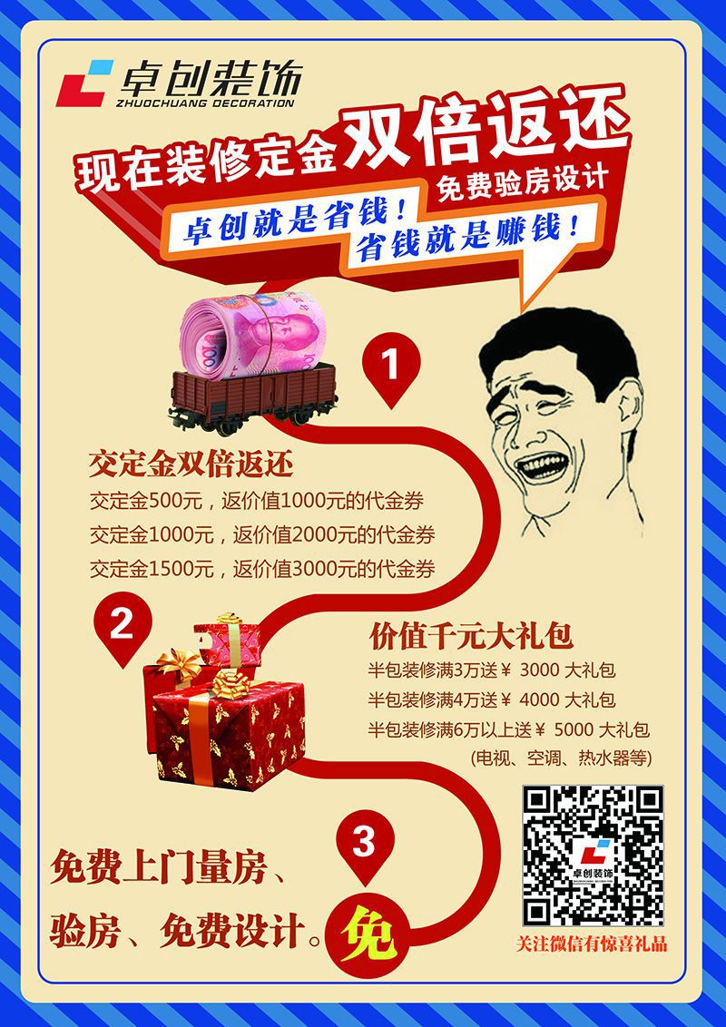 卓創(chuàng)裝飾現征集200戶網絡報名,就可以尊享十項專業(yè)服務:1. 免費上門精確測量愛家;