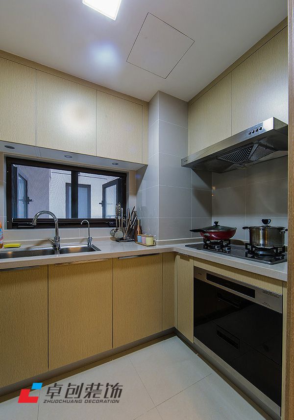 布局小戶型廚房一定考慮省空間,增大廚房收納儲(chǔ)物空間,有過廚房經(jīng)驗(yàn)的都知道,家里的鍋碗瓢勺,干貨,油鹽醬醋,會(huì)隨著生活越來越多,所以做好這些東西的歸納才會(huì)使廚房干凈整潔。卓創(chuàng)裝飾小編覺得可以在選擇鍋蓋時(shí)可以反蓋的蒸鍋或者較高底部的整體櫥柜(底部可以用來儲(chǔ)物)。最大限度的利用廚房的墻壁,在墻壁上設(shè)置掛鉤或者壁櫥等都是不錯(cuò)的選擇。如果廚房是狹長(zhǎng)分布的,則將櫥柜設(shè)計(jì)成一字型就能很好的節(jié)省空間,水龍頭跟鍋灶之間的距離不要太大,否則在使用的時(shí)候會(huì)不方便。